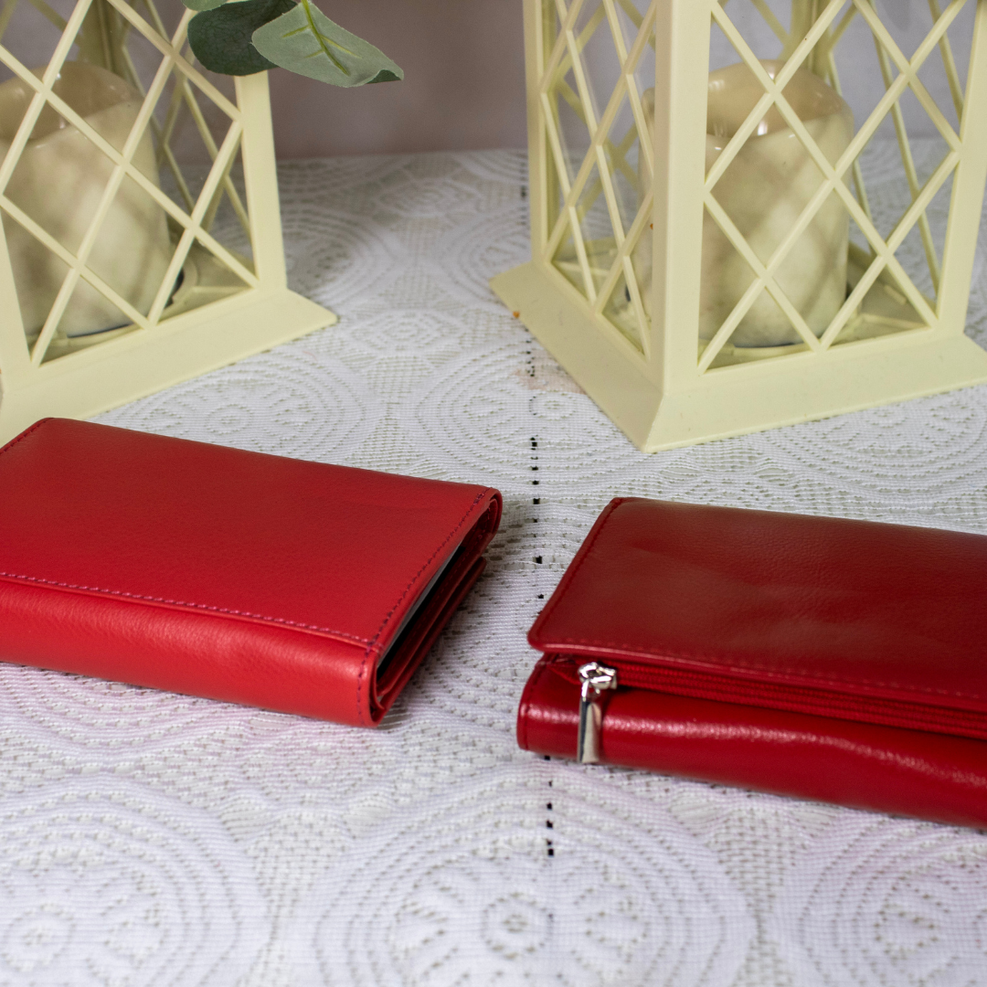 Key Features of Scarlet Leather Tri-Fold Wallet: