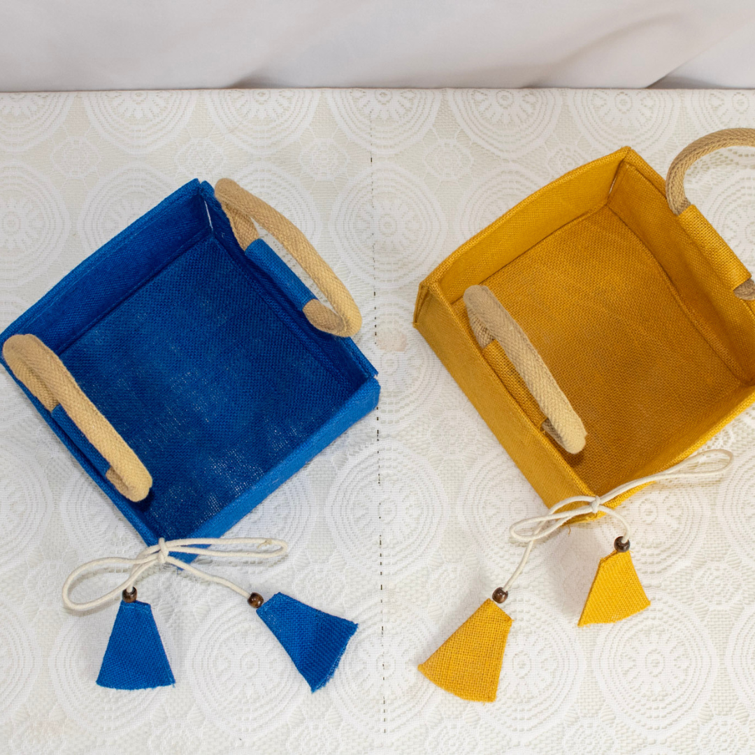 Carry with Confidence and Style with our Vibrant Jute Tassel Gift Basket. Combining high-quality natural textures with a splash of modern color, these handcrafted handbags are the ultimate choice for premium gift hampers, festive celebrations, and elegant home organization. Designed for versatility, they are ideal for creating memorable presentations for your daily essentials.